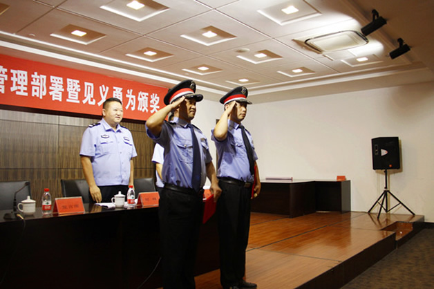 會(huì)上,乾通物業(yè)代表應(yīng)邀發(fā)言,著重介紹了保安管理經(jīng)驗(yàn)、見(jiàn)義勇為事件過(guò)程以及與公安部門(mén)日常工作對(duì)接情況。趙峰大隊(duì)長(zhǎng)代表崇川公安分局及區(qū)見(jiàn)義勇為基金會(huì)宣讀了對(duì)乾通物業(yè)曹福如和張書(shū)華見(jiàn)義勇為的表彰決定,并為二人頒發(fā)了見(jiàn)義勇為證書(shū)及獎(jiǎng)金。同時(shí),號(hào)召與會(huì)的物業(yè)公司及保安公司深入學(xué)習(xí)這種見(jiàn)義勇為的精神。