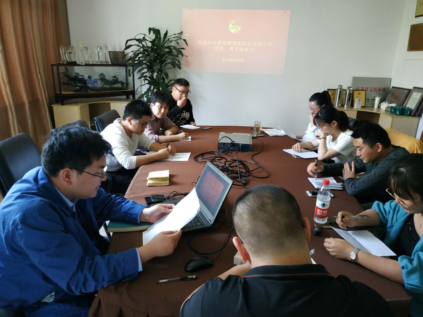 今年是共青團建團97周年,五四運動100周年,為進一步弘揚五四精神,激發(fā)新時代公司團員、青年以飽滿的熱情積極投身本職工作當中,2019年5月4日,南通紡織控股集團紡織染有限公司團總支召開了以“爭做優(yōu)秀青年,助力企業(yè)發(fā)展”為主題的團員青年代表座談會。紡織染黨委副書記盧李星及各團支部團員青年代表共計10人參加了座談會,會議由團總支書記王建興主持。座談會共分為三項議程。首先由王建興代表公司團總支作了《2018年團總支工作總結及2019年工作計劃》。