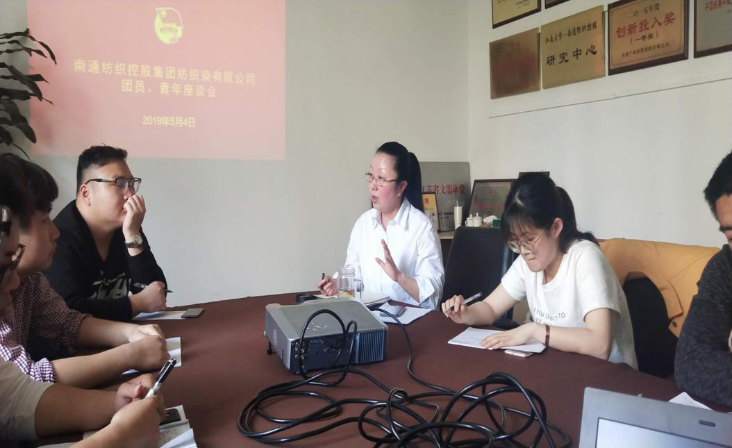 王建興表示,2018年以來,公司團總支始終堅持在公司黨委和集團團委的正確領導下,緊緊圍繞紡織染生產經營目標,圍繞做好“各條戰(zhàn)線,青年先行”工作要求,高舉團旗跟黨走,勤奮務實,團結拼搏,在團員青年思想教育、活動開展,安全知識普及和積極性調動等方面取得一定成績。對于2019年工作計劃,王建興強調將一是著重圍繞習近平總書記在紀念五四100周年大會上的重要講話精神,進一步加強團員青年思想教育;二是聯(lián)合公司安委會,適時舉辦一期青年安全生產知識講座;三是聯(lián)合工會開展一次青年職工趣味活動;四是圍繞建國70周年契機,開展好愛國主義教育,配合公司黨委舉辦一期黨史、習近平新時代中國特色社會主義思想和十九大精神知識競賽;五是全力做好優(yōu)秀團員、青年推優(yōu)入黨工作。隨后,各團員青年們暢所欲言,圍繞主題,從自身學習、工作情況出發(fā),分享心得體會,并就如何助力紡織染發(fā)展,積極建言獻策,盧李星與在座的團員青年代表親切交流,座談會氣氛熱烈輕松,在交流過程中,大家向盧李星充分表達了自己的理想和訴求,展現(xiàn)出對紡織染公司發(fā)展的激情和熱情,同時也表達了將在今后的學習工作生活上更加積極進取、以敢為人先的精神,積極投身于紡織染公司生產經營的發(fā)展中去。座談中,王建興也就作為年輕人如何在公司改革發(fā)展中實現(xiàn)自己的理想和抱負,從自身工作感悟,談了談自己的看法,與座談青年一同共勉,他表示一要信念在心,有信念才能勇無直前;二要善于學習,勤學才能“增智提素”;三要學會感恩,用于擔當。