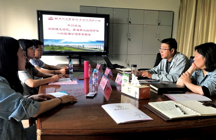 5月21日下午,洛陽理工學(xué)院環(huán)境工程與化學(xué)學(xué)院黨委書記王莉、南通市人才服務(wù)中心關(guān)龍志一行數(shù)人前來南通江山農(nóng)藥化工股份有限公司進(jìn)行考察訪問。江山股份黨委副書記、工會(huì)主席樊文新,公司HR總監(jiān)王志敏等參加了接待。