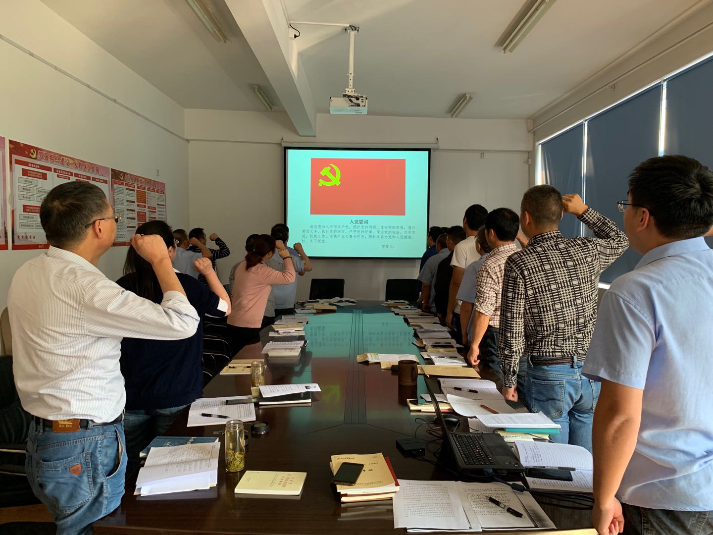 隨后,按照部署,從支部書記開始,現(xiàn)場每名黨員依次宣讀了自己的入黨志愿書中的核心內(nèi)容,并對入黨動機(jī)和表態(tài)等部分進(jìn)行了重點朗讀。宣讀后,還簡短地和大家分享了自己入黨時的那段經(jīng)歷、并結(jié)合各自特點、工作職責(zé),談一談入黨為什么、成長靠什么、為黨干什么、進(jìn)而提煉交流自己的入黨初心;進(jìn)一步堅定了信仰信念信心。會上,全體黨員還重溫入黨誓詞。