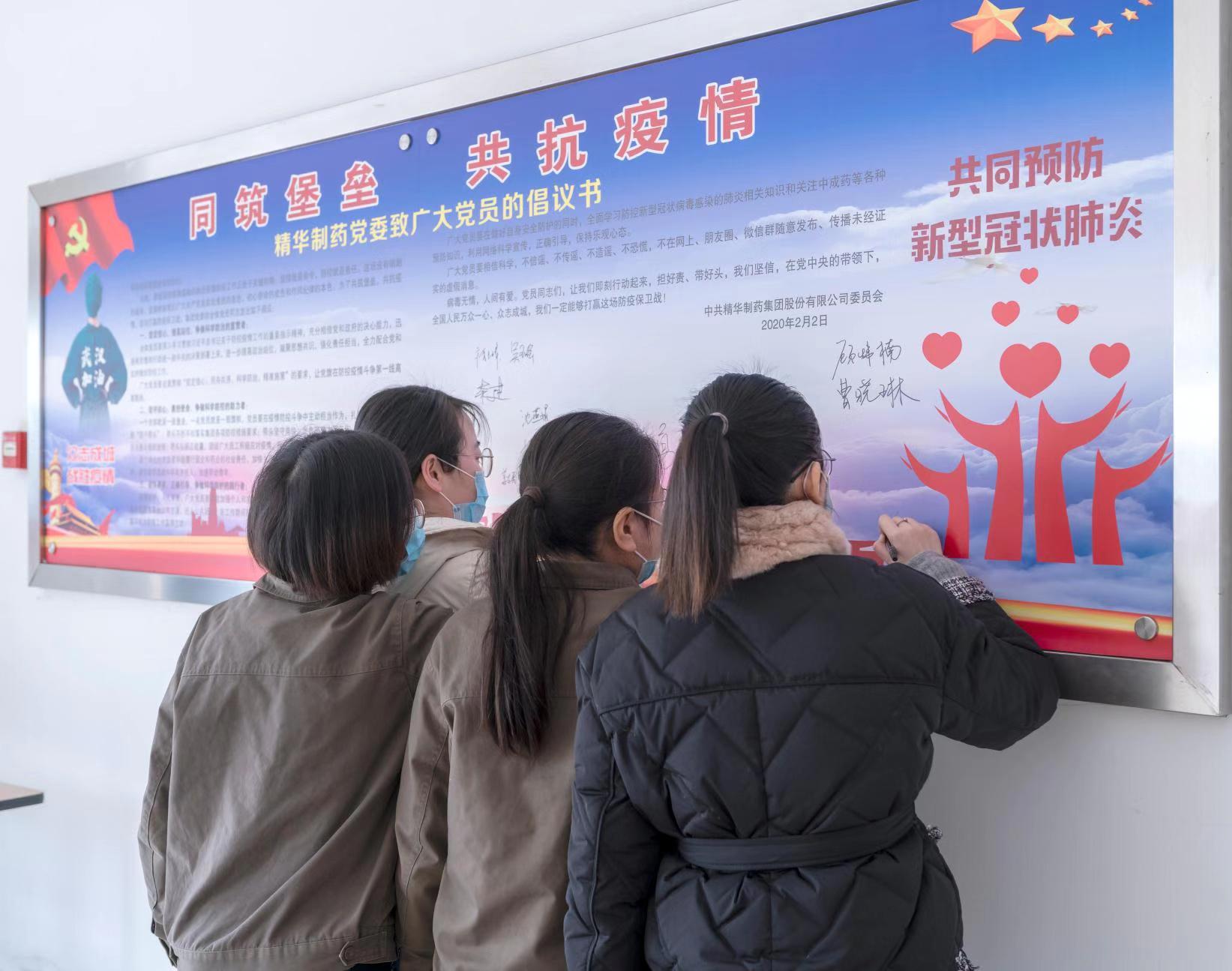 精華制藥黨委發(fā)出倡議書《同筑堡壘,共抗疫情》,倡議黨員同志擔好責,帶好頭,萬眾一心,眾志成城,以高度的思想覺悟和政治站位爭做科學防控疫情的宣貫者、助力者和踐行者。黨委領導高度重視疫情防控工作,職責分工明確,制度規(guī)范到位,行動快速高效,一把手親自指揮、親自部署,各級黨員干部各級領導帶頭值班,沖在疫情防控第一線,組織黨員始終堅守崗位,守護群眾生命安全和身體健康,以實際行動踐行初心使命。除了做好自身防護工作和日常工作外,黨員同志們還紛紛要求主動值班,堅守崗位。黨員帶頭到生產車間一線參加正柴胡飲顆粒的包裝生產,集團公司科室全體人員也主動加入到包裝正柴胡飲顆粒的工作中去。 為保障職工安全健康,精華制藥防控領導小組召開專題會議,制定防控工作方案,通過微信群、電話等方式部署各項疫情防控工作。組織各職能部門、分公司、子公司負責人對單位員工情況進行摸排調查。凡是有疫情較重地居住史或旅行史的人員,凡是與疫情較重地外來人員有密切接觸史的人員,凡是與疑似、確診病人有接觸的人員,凡是出現(xiàn)發(fā)燒、干咳等異常情況的人員,立即上報并自我隔離觀察。堅決杜絕疫情的傳入與傳播,努力踐行一個國有企業(yè)的社會責任。