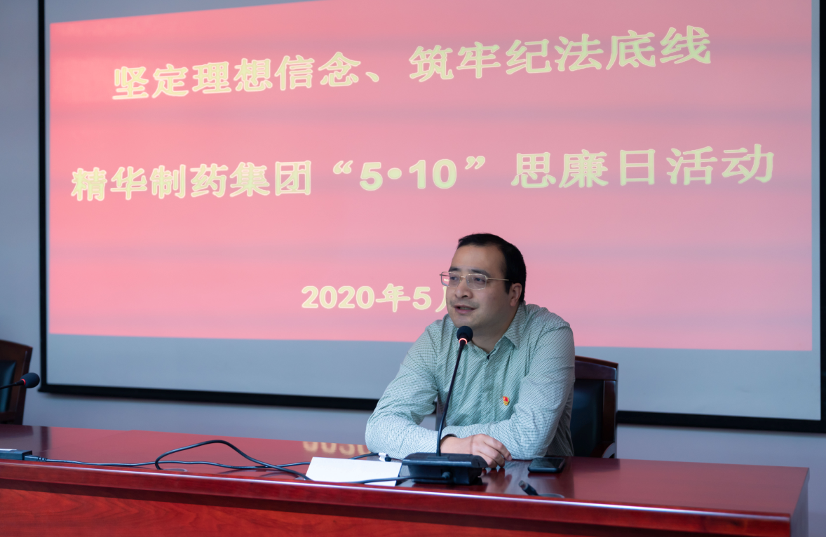 5月11日下午,精華制藥集團(tuán)黨委在三樓會(huì)議室組織開(kāi)展“精華制藥‘5?10’思廉日”警示教育和黨委書(shū)記上廉政黨課活動(dòng)。參加本次活動(dòng)的有集團(tuán)直屬支部、制劑生產(chǎn)支部、制劑銷(xiāo)售支部和原料藥第一黨支部的黨員干部職工。黨委副書(shū)記錢(qián)衛(wèi)峰主持了本次活動(dòng)。