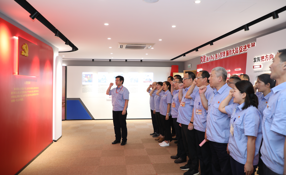在公司黨委委員、副總經(jīng)理毛繼潤帶領(lǐng)下,參加活動(dòng)的全體黨員面向黨旗,莊嚴(yán)宣誓,重溫入黨誓詞。公司黨委為現(xiàn)場7月入黨的12名同志過政治生日,贈(zèng)送政治生日賀卡和圖書。公司黨群紀(jì)檢部副部長金周玉帶領(lǐng)參觀活動(dòng)中心。黨員們在廉潔合規(guī)承諾墻上簽名。
