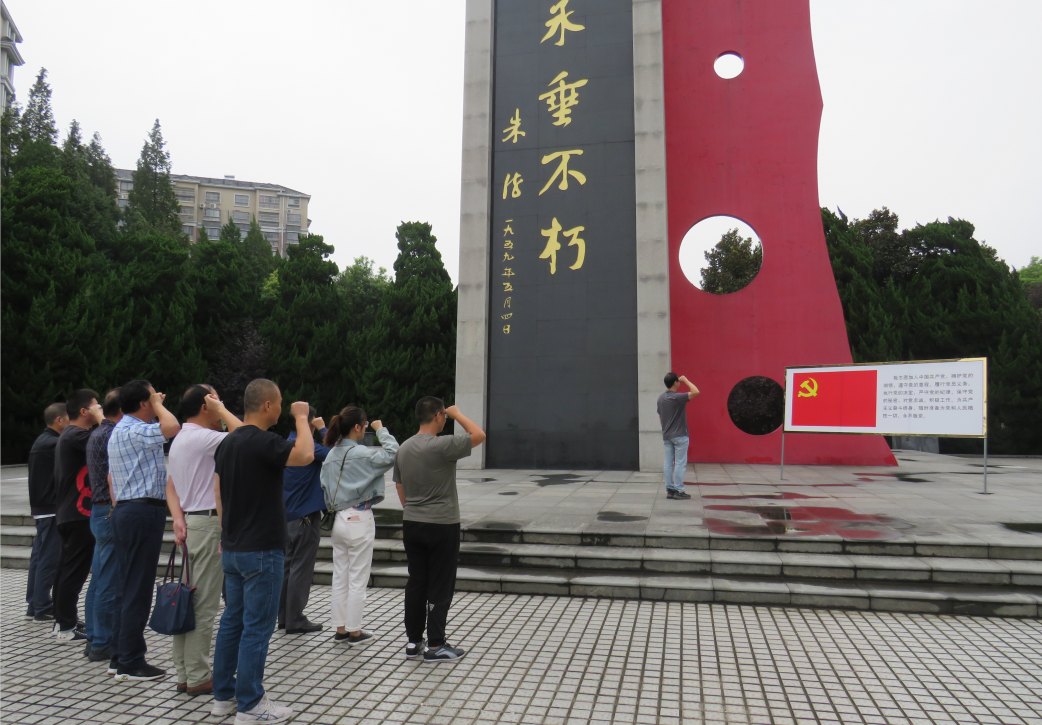 烈士陵園內(nèi),莊嚴(yán)肅靜。由朱德偉人親筆題詞的“革命烈士永垂不朽”紀(jì)念塔屹立在陵園廣場,在紀(jì)念塔下,由黨支部副書記凌德均領(lǐng)讀,全體黨員高舉右手,再次莊嚴(yán)宣誓,重溫入黨誓詞。 在講解員帶領(lǐng)下,全體同志參觀了陵園東、西陳列館,大家認(rèn)真聽取了革命先烈事跡故事,觀看了珍貴的歷史照片、烈士遺物。在講解員聲情并茂的講解下,所有同志無不對(duì)革命先烈們“火燒竹籬笆”、“寧可站著死,也不跪著生”的大無畏氣概以及無私奉獻(xiàn)的精神所感染。