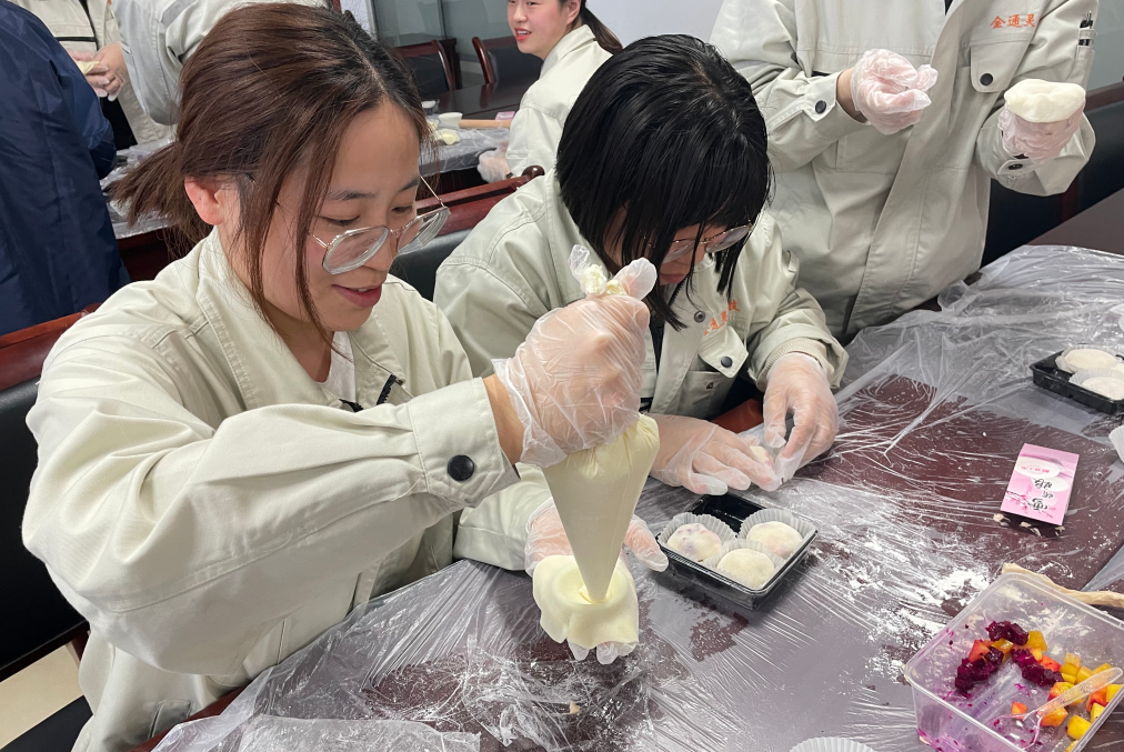 當(dāng)天下午,金通靈近100名女職工歡聚813活動(dòng)室,在張老師的現(xiàn)場(chǎng)制作教導(dǎo)下,分別制作了雪媚娘和便當(dāng)?shù)案狻;顒?dòng)現(xiàn)場(chǎng),張老師講解了烘焙知識(shí)和制作流程,職工們?cè)谡J(rèn)真聆聽后,體驗(yàn)著自己動(dòng)手制作甜品的樂趣,享受著快樂的烘焙時(shí)光。隨著時(shí)間的推移,一個(gè)又一個(gè)飽滿、垂涎欲滴的雪媚娘、一個(gè)個(gè)精致的便當(dāng)?shù)案庵谱魍瓿伞?
