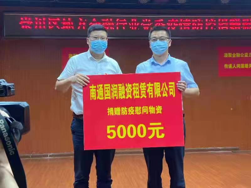 國(guó)潤(rùn)租賃作為南通市融資租賃行業(yè)的領(lǐng)軍人物,第一時(shí)間響應(yīng),黨支部副書記吳小兵同志代表公司向抗疫一線社區(qū)捐贈(zèng)5000元防疫物資,助力于街道及社區(qū)的疫情防控工作。