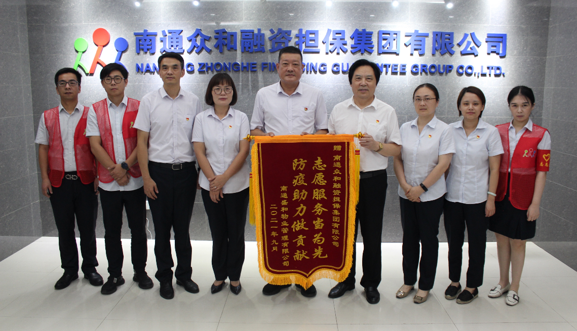 9月6日下午,南通盛和物業(yè)有限公司黨支部書記兼總經(jīng)理劉曉軍、副總經(jīng)理高曉蓉一行向眾和擔(dān)保送來了印有“志愿服務(wù)當(dāng)為先 防疫助力做貢獻(xiàn)”字樣的錦旗,誠摯感謝眾和擔(dān)保在盛和物業(yè)駐啟瑞廣場防疫工作人手緊張的關(guān)鍵時期,迅速組建了一支40名青年黨員、業(yè)務(wù)骨干構(gòu)成的“兩在兩同 同心抗疫”志愿者服務(wù)隊。他們利用工作之余,起早貪黑,放棄午休,不辭辛苦,堅守在防疫一線。從測溫驗碼到秩序維護(hù),從交通疏導(dǎo)到卡口管理,哪里需要就到哪里,為啟瑞物業(yè)防疫工作作出了積極貢獻(xiàn),也得到了啟瑞廣場業(yè)主的點贊,充分彰顯了國有企業(yè)責(zé)任擔(dān)當(dāng)。
