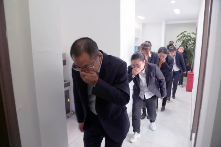 隨后公司組織全體員工進(jìn)行了疏散演練,首先由公司安全員在6樓辦公區(qū)域發(fā)出火情報(bào)告,隨后黃色煙霧迅速彌漫整個(gè)辦公區(qū)域,根據(jù)應(yīng)急預(yù)案逃生指令,安全員通知各科室人員迅速撤離,各科室人員按照消防通道迅速撤離,從六樓辦公區(qū)域撤離到1樓安全區(qū)域,整個(gè)疏散演練耗時(shí)4分鐘,疏散演練成功告捷。