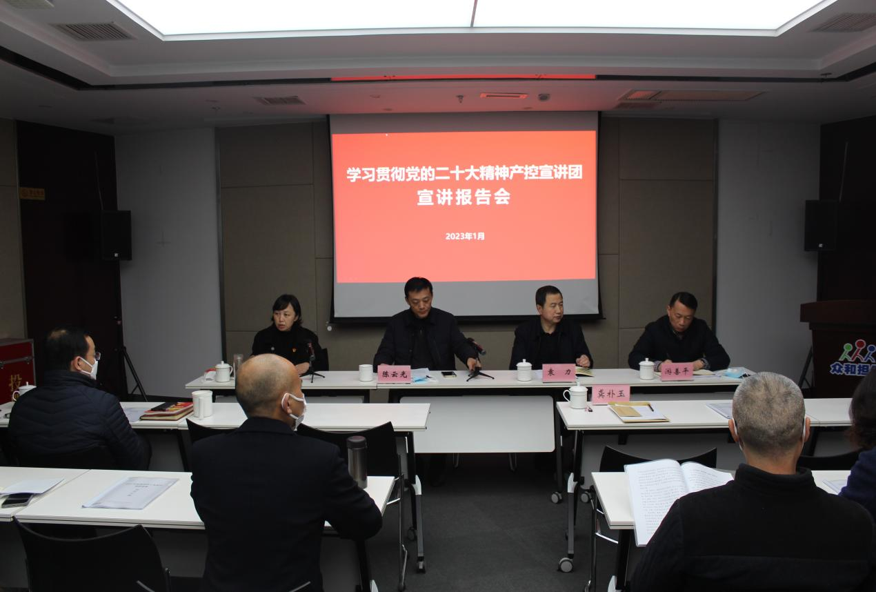 根據(jù)產(chǎn)控集團部署要求,為深入學(xué)習宣傳貫徹黨的二十大精神,1月14日下午,產(chǎn)控集團黨委委員、副總經(jīng)理陳云光、紀委副書記游善平一行走進眾和擔保開展黨的二十大精神集中宣講。公司領(lǐng)導(dǎo)班子成員、中層干部及員工代表共計30人參加宣講報告會。