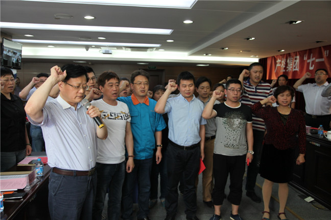 會議首先由集團(tuán)黨委委員、副董事長周崇慶宣讀了《關(guān)于表彰2014年度“五好”黨組織、優(yōu)秀黨員、優(yōu)秀黨務(wù)工作者的決定》和《關(guān)于表彰2014年度產(chǎn)控集團(tuán)“十佳勞動標(biāo)兵”的決定》,對獲獎個人及單位進(jìn)行了頒獎授牌儀式。隨后,陸強新帶領(lǐng)新黨員舉行了莊嚴(yán)的入黨宣誓儀式,重溫入黨誓詞。